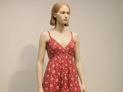 Αέρινο κόκκινο φόρεμα με λουλούδια, ιδανικό για καλοκαιρινές βόλτες.