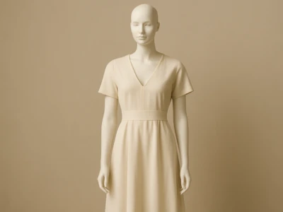 Κρεμ φόρεμα καθημερινό, ιδανικό για κομψές εμφανίσεις στο γραφείο.